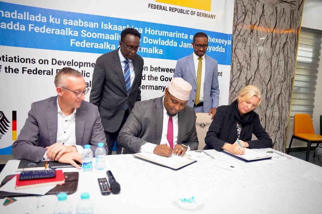 Dhuusamareeb (Idaacadda Daar-Dheer)-Wasiirka Qorsheynta, Maalgashiga iyo Horumarinta Dhaqaalaha, Mudane Maxamuud Cabdiraxmaan (Beenebeene), ayaa ka warbixiyay heshiis iskaashi horumarineed oo ku kacaya in ka badan €75 milyan, oo ay kala saxiixdeen Dowladda Soomaaliya iyo Dowladda Jarmalka.