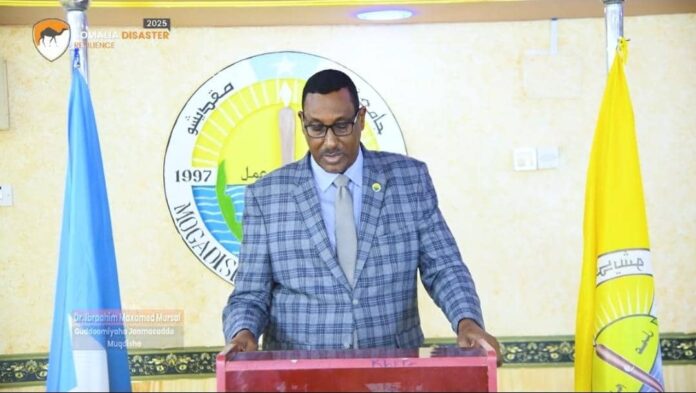 Guddoomiyaha Jaamacadda Muqdisho, Dr. Ibraahim Maxamed Mursal, ayaa sheegay in Shirweynaha U Adkeysiga Aafooyinka ee Soomaaliya 2025 uu leeyahay muhiimad weyn oo ku saabsan xoojinta iskaashiga cilmi-baarista iyo ka hortagga masiibooyinka.