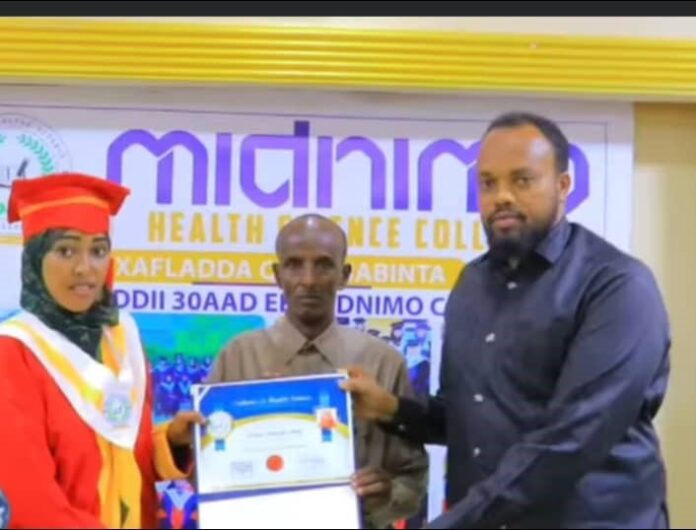 Dhuusamareeb (Idaacadda Daar-Dheer)-Masuuliyiin ka tirsan Dowladda Galmudug ayaa maanta ka qeyb galay xaflad qalin-jabin ah oo ay u sameeyeen arday dhameystay waxbarashadooda cilmiga caafimaadka ee ka socotay Macadka Midnimada ee magaalada Caabudwaaq.